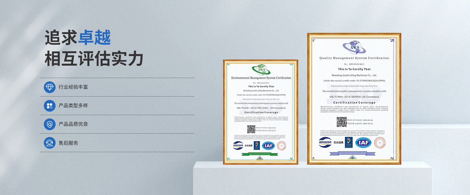 山东君德起重机械有限公司成立于2019年,我们是一家大型现代化企业专业从事起重机及重型装卸设备的生产、研发、销售、安装、维修。公司位于山东省新泰市杨柳工业园区。